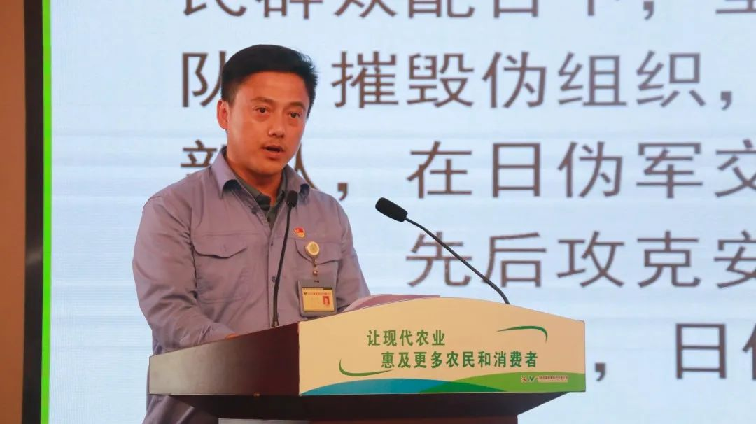 揚(yáng)農(nóng)股份團(tuán)委書記、優(yōu)嘉植保團(tuán)委書記、工會副主席馬越作蘇中四分區(qū)反“清鄉(xiāng)”斗爭黨史分享。