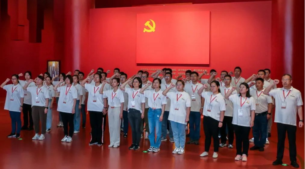 “我志愿加入中國共產(chǎn)黨,擁護黨的綱領(lǐng),遵守黨的章程……”在淮海戰(zhàn)役紀念館,公司工會主席、黨群工作部主任張慶平同志帶領(lǐng)大家面向鮮艷的黨旗,重溫入黨誓詞,叩問入黨初心。