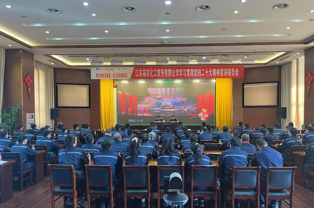 3月31日,先正達(dá)集團(tuán)中國(guó)副總裁、揚(yáng)農(nóng)股份黨委書(shū)記、總經(jīng)理吳孝舉赴優(yōu)嘉植保調(diào)研指導(dǎo)工作,深入一線宣講黨的二十大精神,揚(yáng)農(nóng)股份及各子公司黨政領(lǐng)導(dǎo)班子成員、工段長(zhǎng)及以上管理人員、黨支部委員和部分黨員、入黨積極分子、員工代表共170余人參加宣講報(bào)告會(huì)。