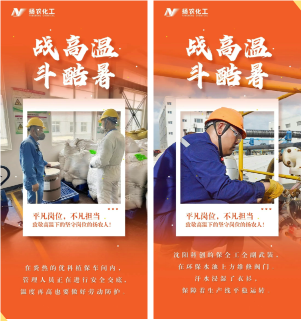? ? ? ?炎炎夏日,熱浪如涌。在揚(yáng)農(nóng)股份,始終有這樣一群最可愛的人——他們無懼烈日的灼燒、不畏高溫的“烤”驗,毅然堅守在各自的崗位上,用被汗水浸透的背影,生動詮釋著艱苦創(chuàng)業(yè)、實干擔(dān)當(dāng)、守正創(chuàng)新、聚力共贏的揚(yáng)農(nóng)股份優(yōu)良傳統(tǒng)。