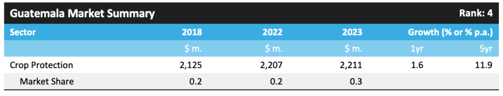 ? ? ? ?危地馬拉的農(nóng)藥市場在 21 世紀的前二十年持續(xù)增長,但此后趨于穩(wěn)定。危地馬拉的農(nóng)業(yè)重點已轉(zhuǎn)向種植用于出口的經(jīng)濟作物,農(nóng)藥市場增長的放緩與這些商品價格低迷的時期相對應。